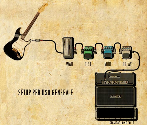 CHITARRA -> WAH -> OVERDRIVE/DIST -> CHORUS -> PHASER/FLANGER -> DELAY -> AMP